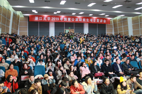 下午3点,2019年国家公派研究生项目宣讲会于紫金港校区临水报告厅准时开始,为做好2019年国家公派留学选派工作,研究生院对此次宣讲会进行了精心组织与策划,建立多方位沟通渠道,通过研究生院网站主页、校网主页、“浙大研究生”、“浙大博士生”微信公众号等发布宣讲会信息。经前期大力推介,本次宣讲会吸引了近600名师生参加,参会人数再创新高;研究生院副院长叶恭银主持会议,宣讲会由五个环节组成。