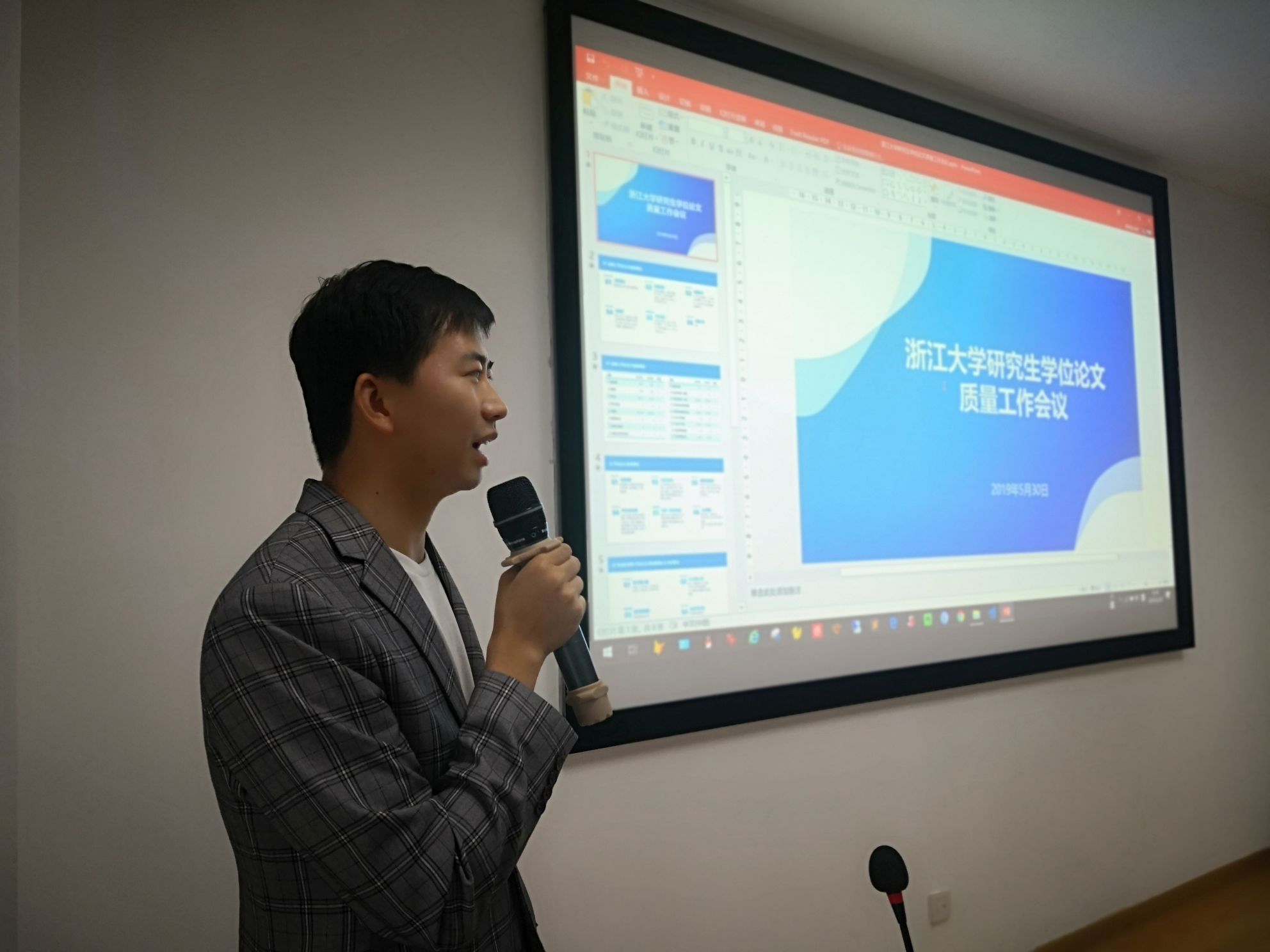 随后,学位办郑龑老师通报了2018年浙江省硕士学位论文抽检的整体情况,并强调了学位授予工作中需要注意的事项。